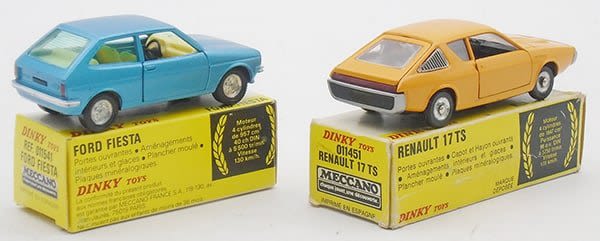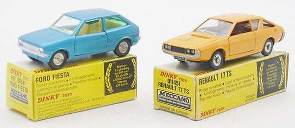1541 Ford Fiesta, metalling blue, orig box, 1451 Renault 17 TS, orange, orig box minor wear, C8.