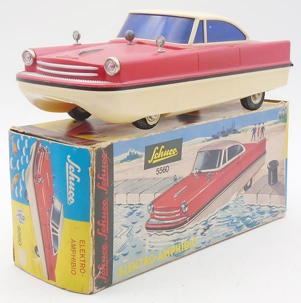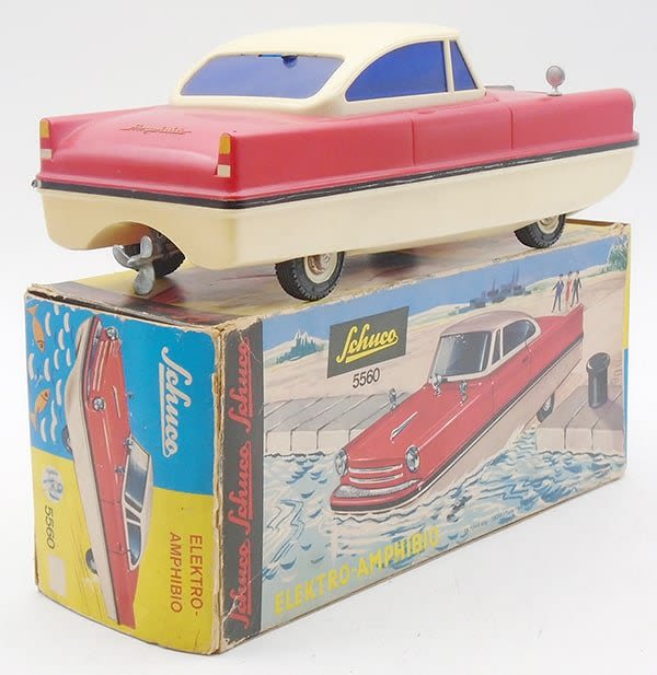 plastic, battery operated, not working, 11 in, plastic wheel hubs are melting, 1 front tire doesn’t spin, orig box worn, 1 flap taped, C7-8.