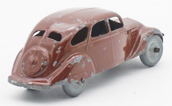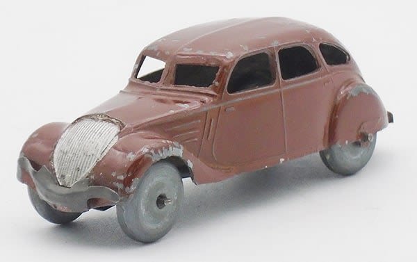 brown w/tin baseplate & metal tires, paint chipped, ca 1948, C5-6.