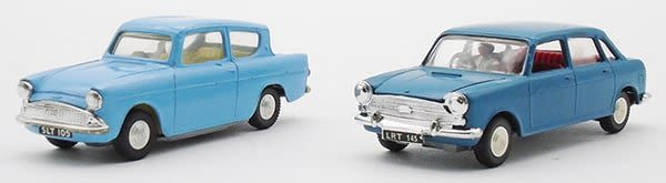1:42 scale, 213 Ford Anglia, blue, 286 Austin 1800, blue, C7-8.