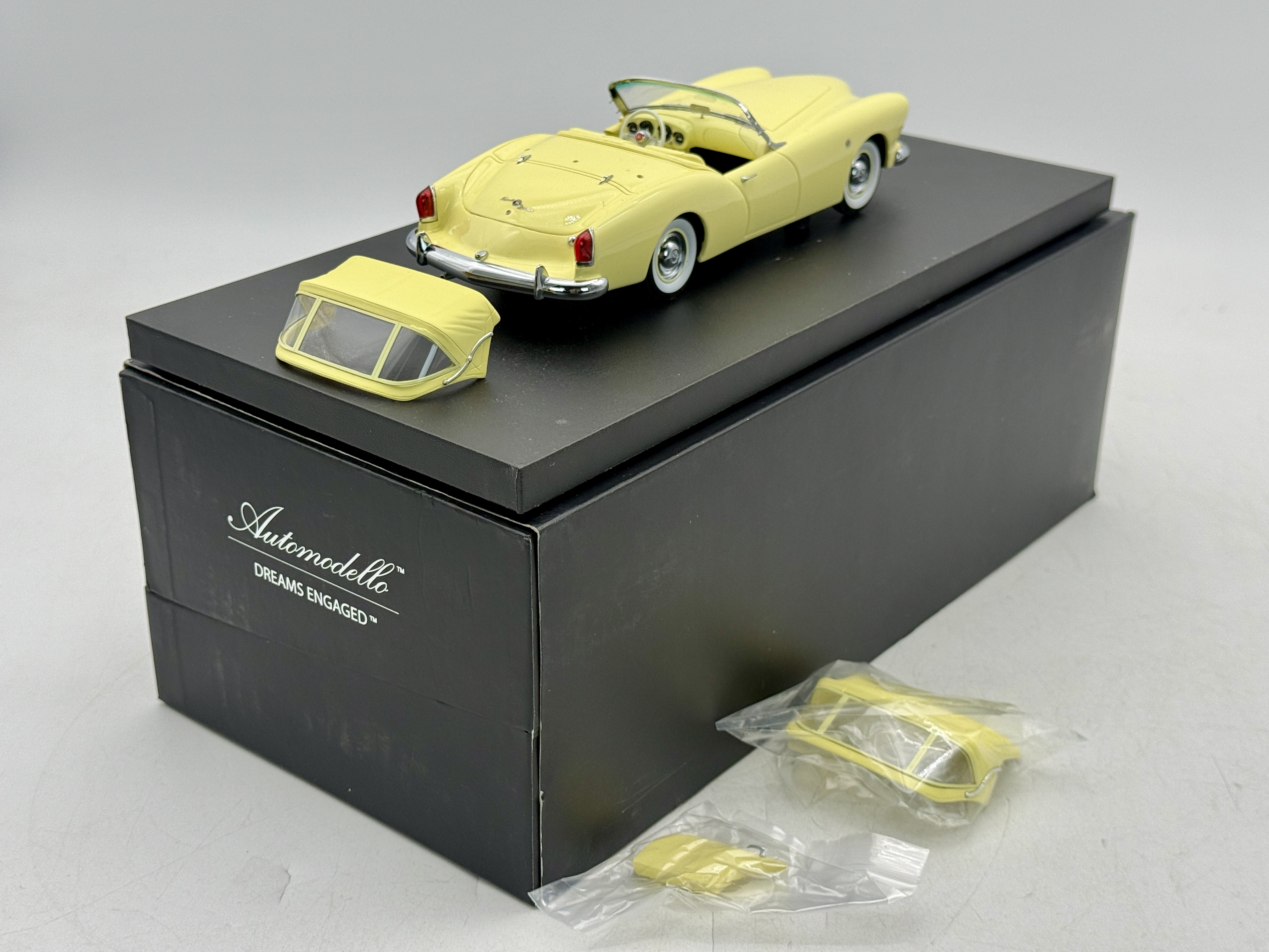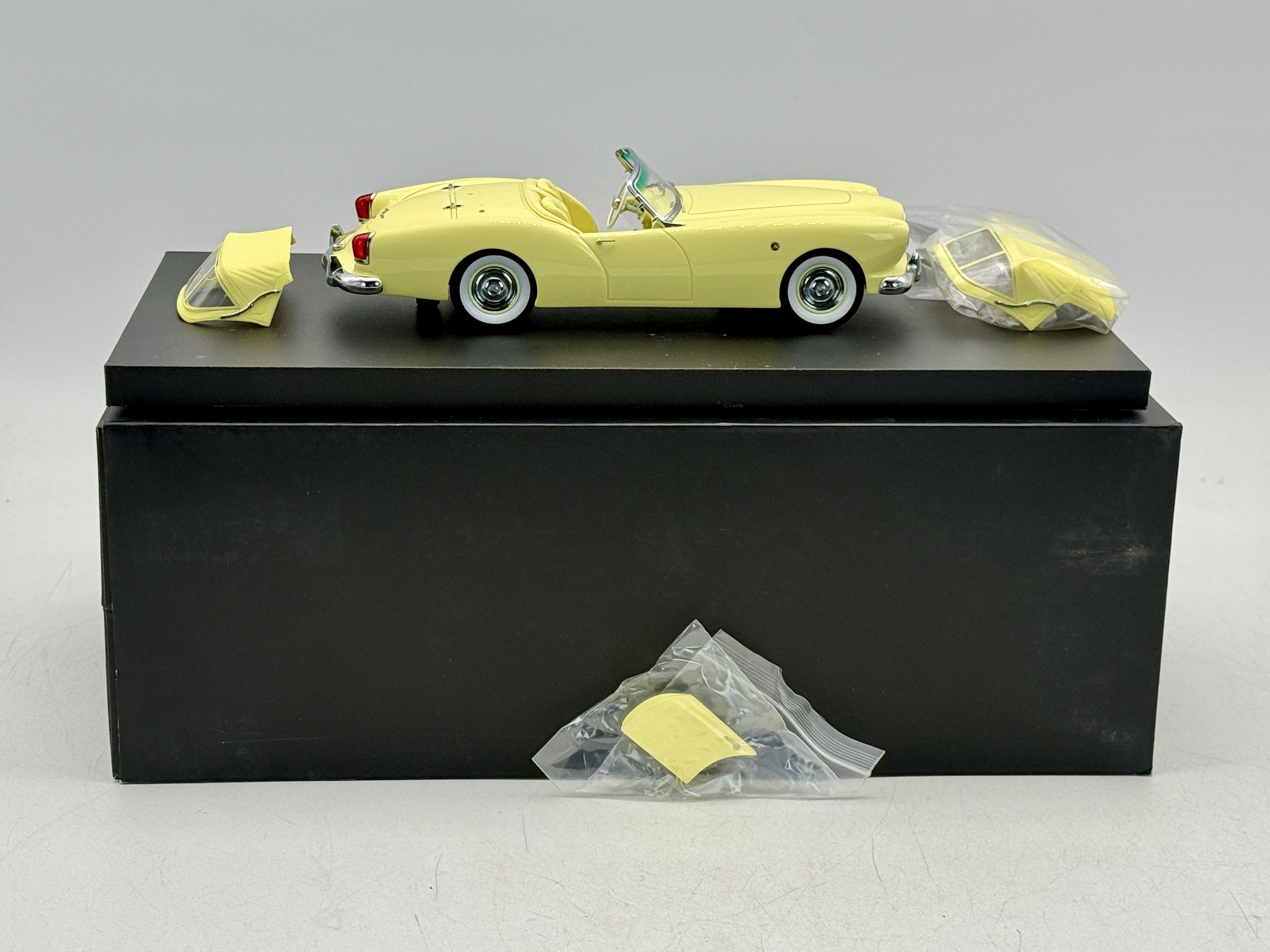 resin, 7.5 ” long, 1:24 scale yellow Automodello Tribute Edition 1954 Kaiser Darrin Model 161 scale model car featuring interchangeable roof and door components and original branded packaging. tribute edition #35 of 54, OB and inserts C9