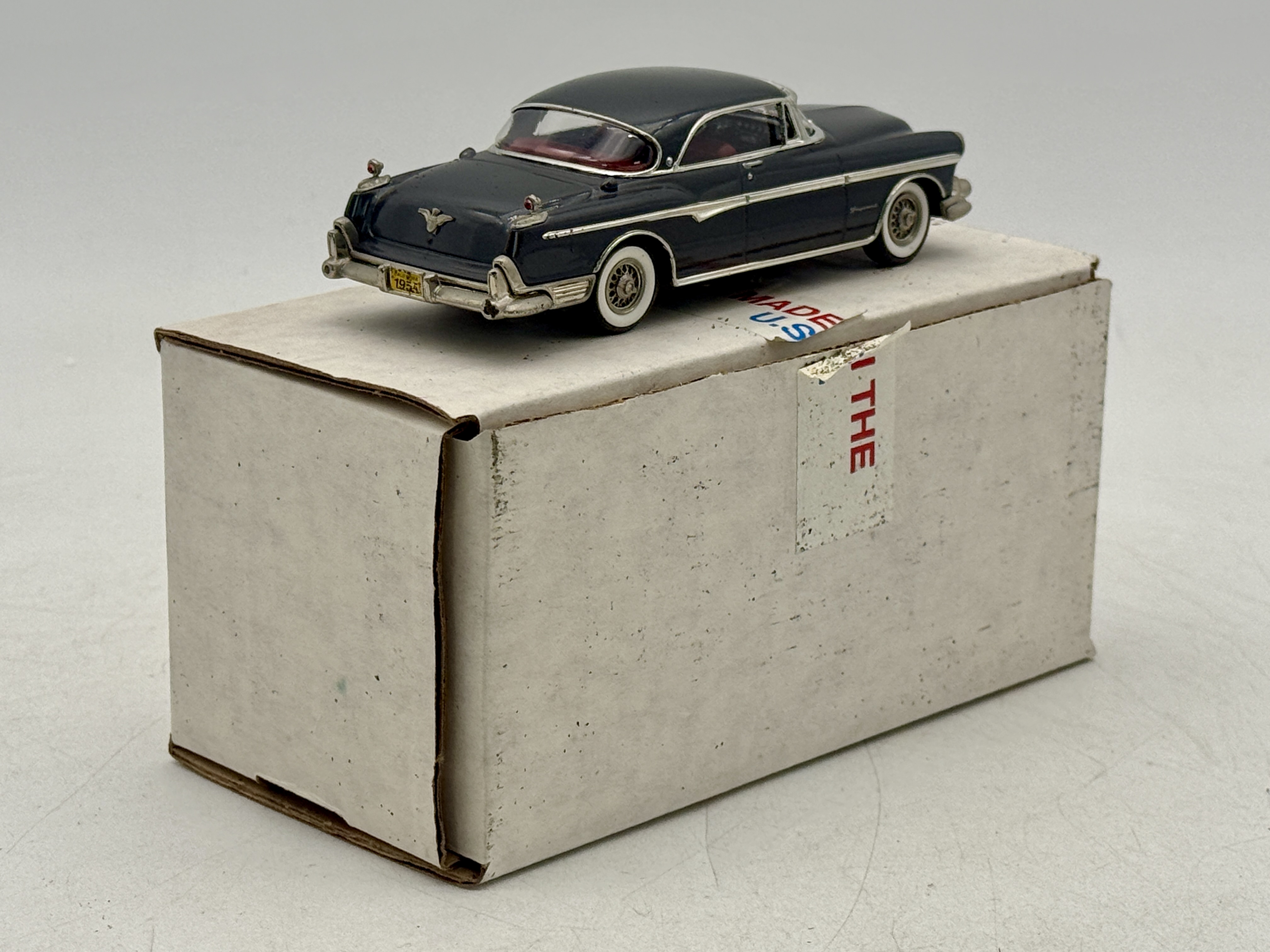 A dark gray U.S.A. Models USA-2 1955 Chrysler Imperial limited edition model car, number 94 of 500, in its original Embassy Gray labeled box. 1:43 scale, OB mw C9