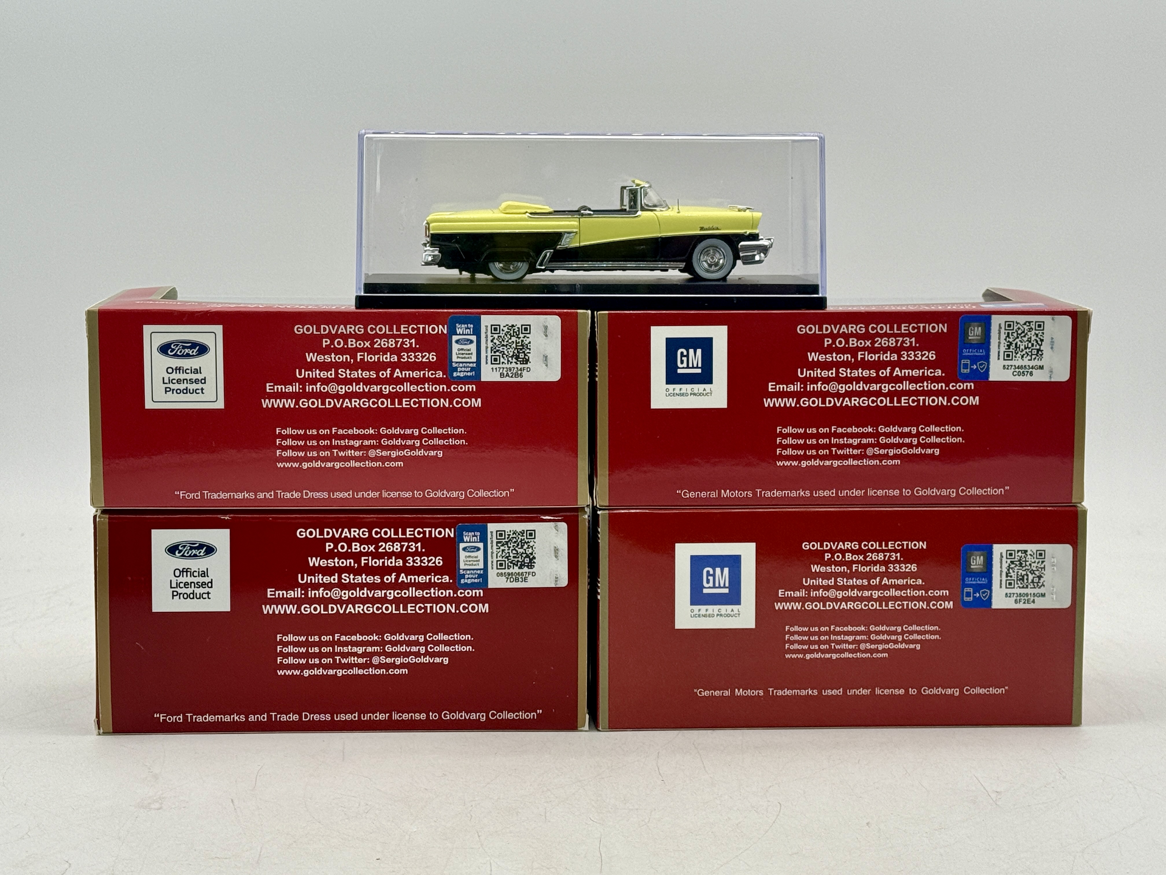 A collection of resin model cars: GC-018B 1963 Chevy Nova, GC-001A 1958 Ford Fairlane, GC-028 1964 Buick wildcat, GC-036B 1961 Mercury Monterey, 1956 Mercury Montclair, OB’s missing 1 cardboard sleeve C9.