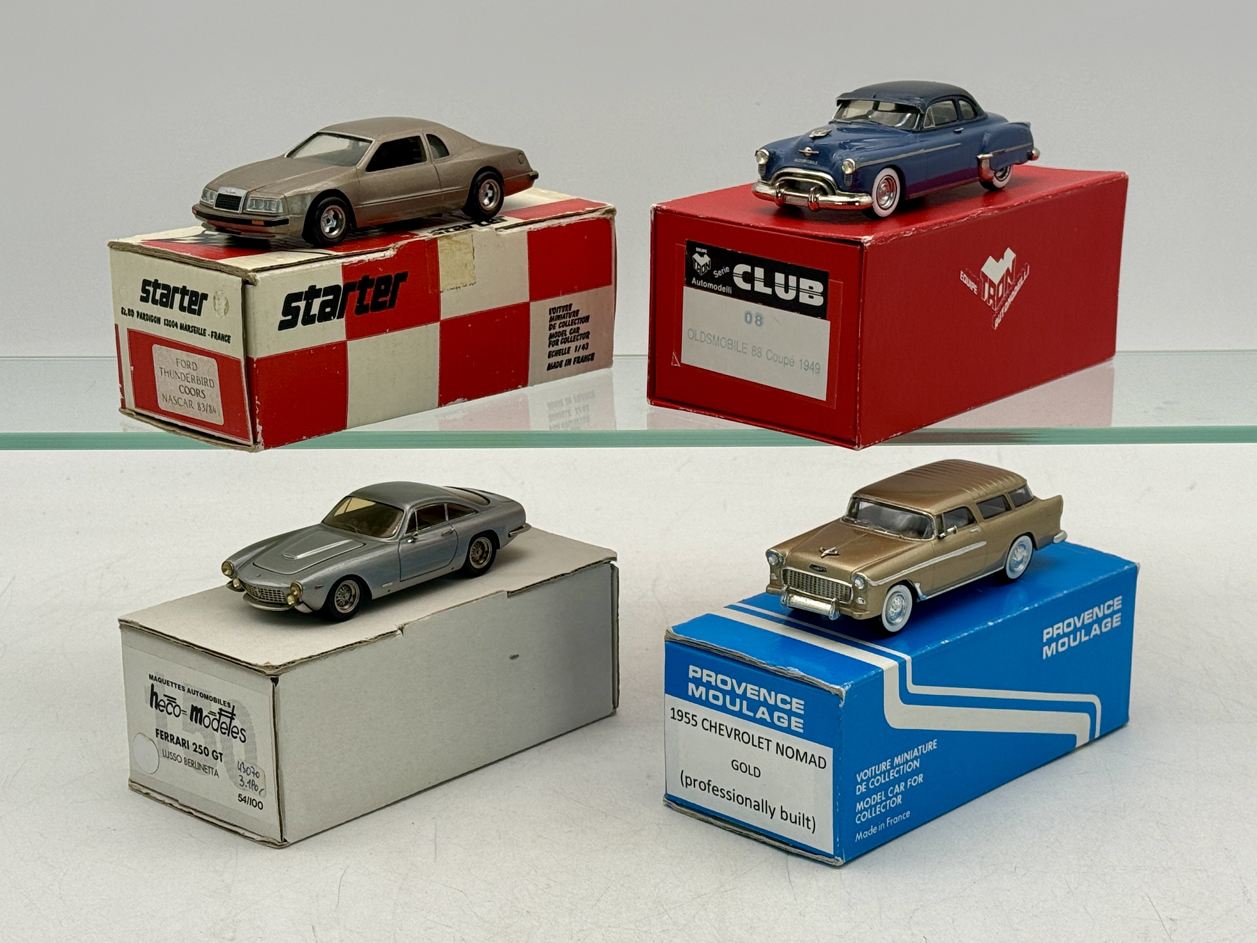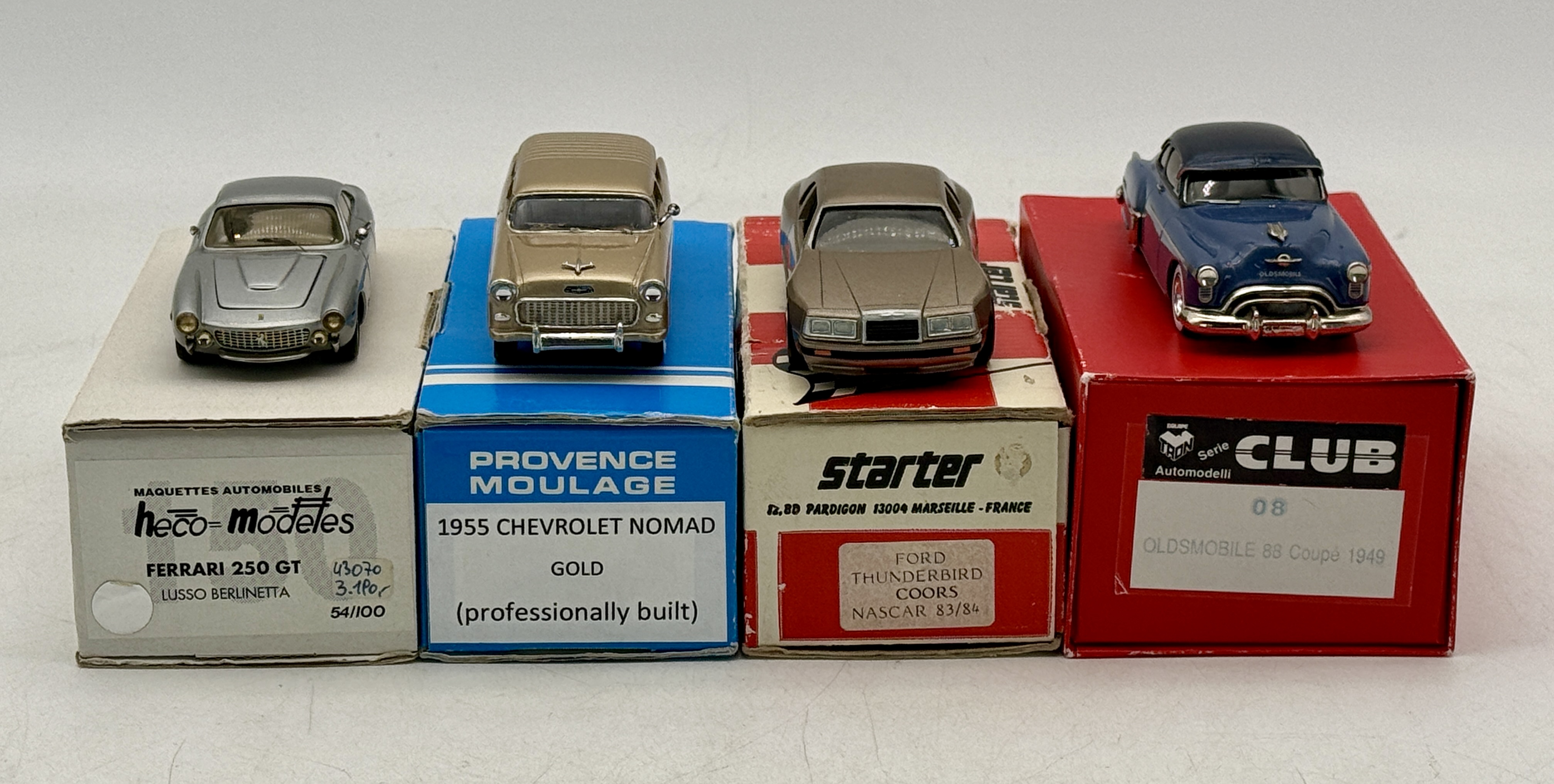 1:43 scale , resin, TRON #8 1949 Cadillac. Starter Ford Thunderbird, Heco Ferrari 250 GT #54 of 100, Provence Moulage 1955 Chevy Nomad OB’s C9