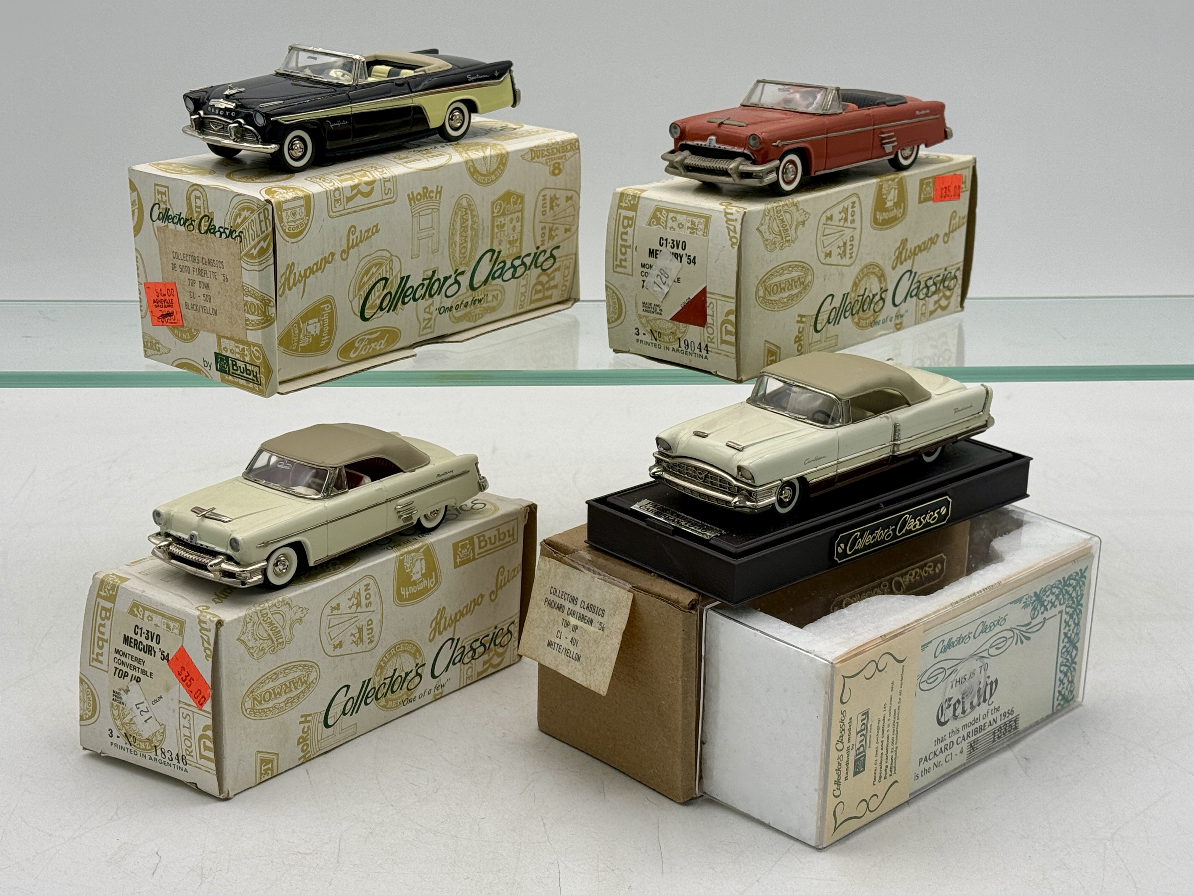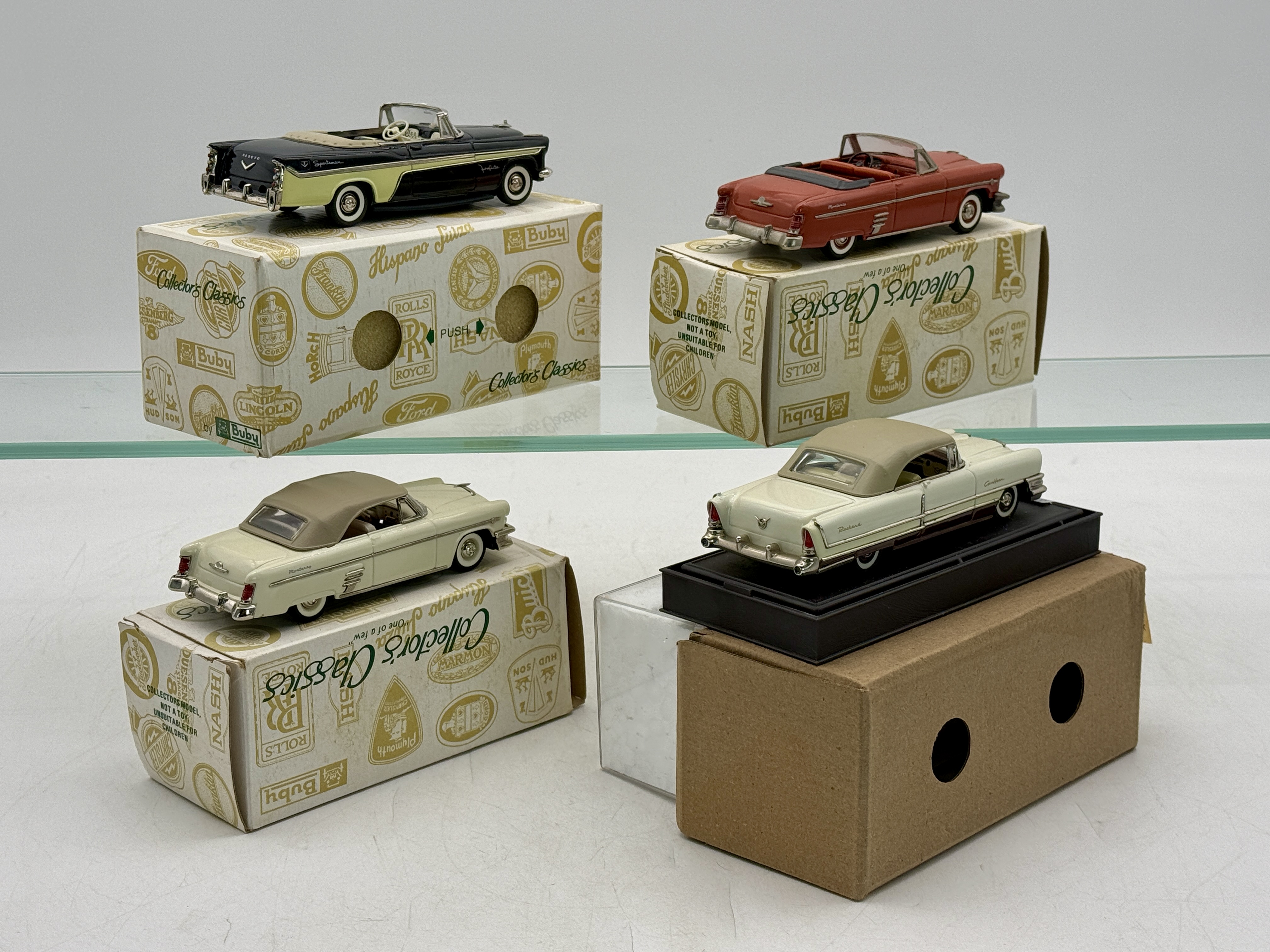 1:43 scale, 2x 1954 Mercury, 1956 Packard Caribbean, 1956 De Soto, OB’s C9