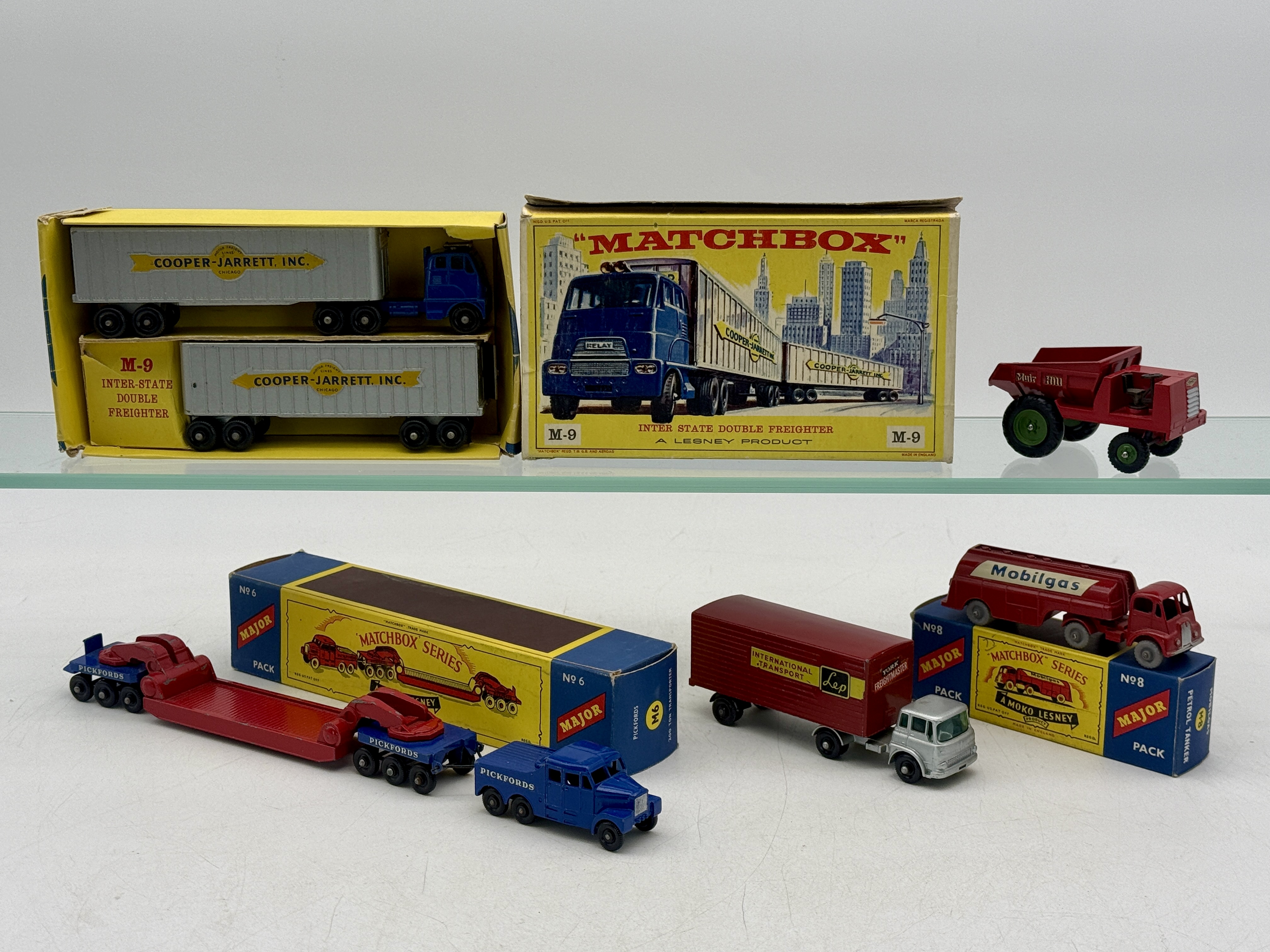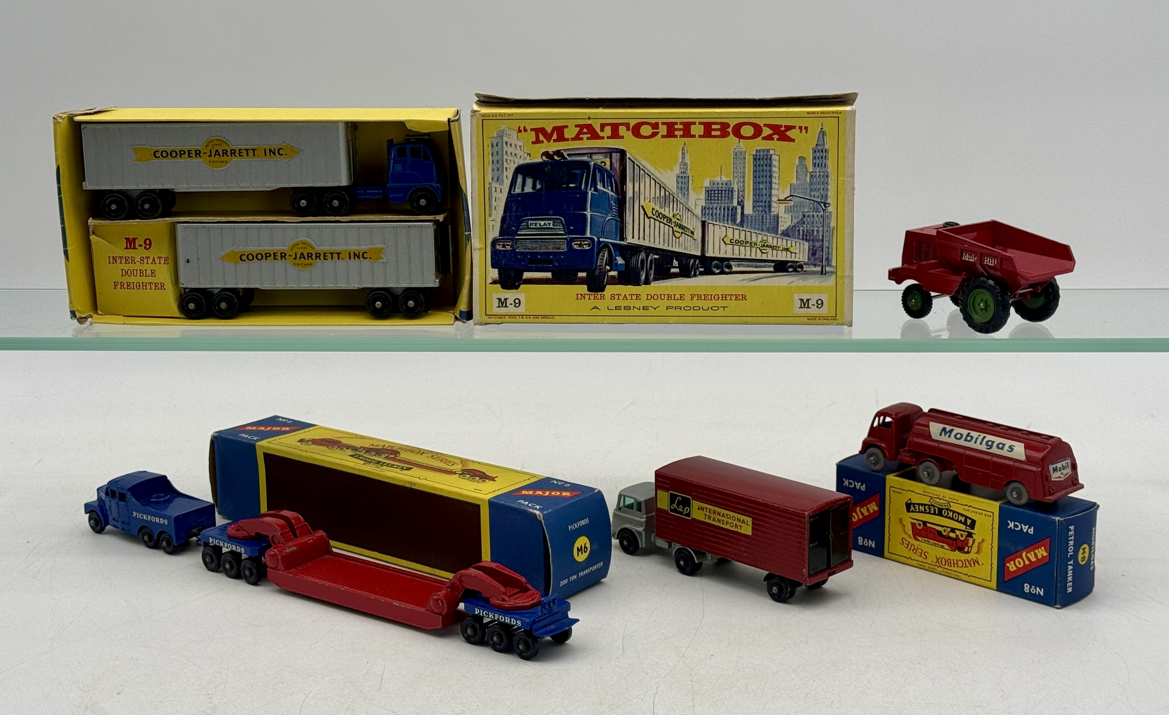 For matchbox major packs, M682 with chips on trailer, M2B5 Bedford trailer, M8A1 mobile gas tanker, M9A3 interstate truck set, K282 Muir Hill dumper, 3 OB’s, one OB is worn C7-9.