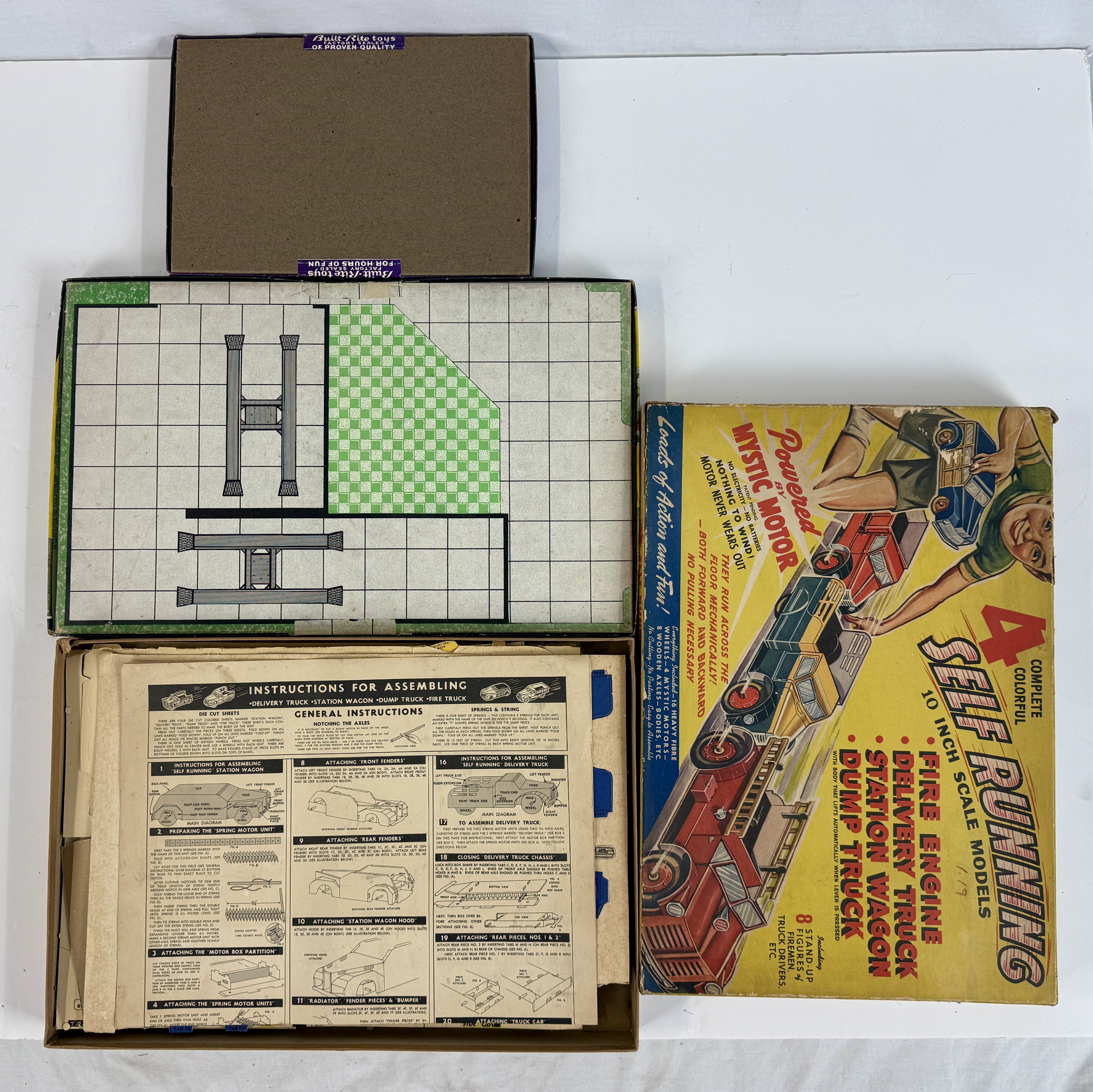 A Trio of Vintage Built-Rite Cardboard Toy Sets